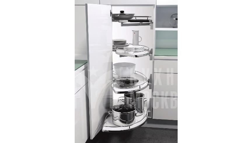 - Верхную полку можно переставлять по высоте. Slide Corner (белое дно с хромированным регингом) для фасада шириной 450мм.