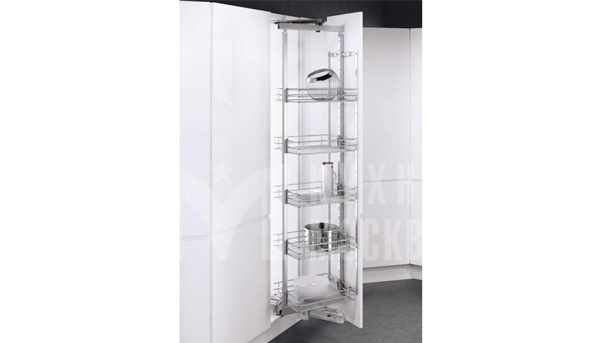 Системы для высоких кухонных пеналов с разворотом. Облегчает обзор и доступ к содержимому шкафа. Встроенная защита от произвольного закрывания при открытой системе.
